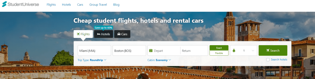 I have been using Student Universe since about 2014 when I started traveling extensively. Since then, they are the first place I go to look for flights and they are the baseline I use when comparing across different platforms. If it’s cheaper than Student Universe, it’s a good deal.